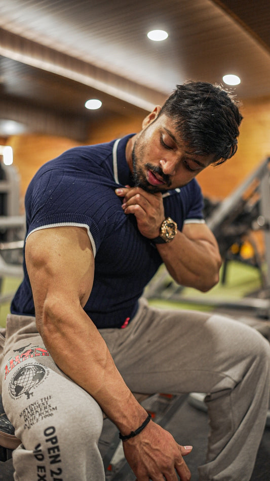 Navy Blue Sleek Striped Polo T-Shirt